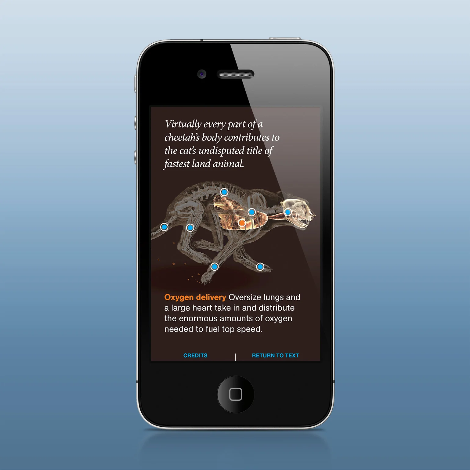 Three months ago, National Geographic invited Joe Zeff Design to help reinvent one of the world's most admired magazines for a tiny, 4-inch screen. We were privileged to have the opportunity to collaborate with the creative team at National Geographic, in particular Creative Director Bill Marr, Acting Director of Digital Publishing Lisa Lytton and Interactive Developer Jaime Hritsik. On the JZD side, president Joe Zeff and art directors Krissi Xenakis and Christopher Holewski were involved in every aspect of design and development.
